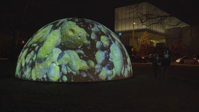 Association for Public Art commissioned Greenhouse Media to work with artist Jennifer Steinkamp and Andrew Southern Consulting to help with system design and configuration, installation and maintenance of Jennifer Steinkamp: Winter Fountains, a large-scale media-based public art installation situated at four sites along Philadelphia's Benjamin Franklin Parkway. The installation consisted of (4) 28' wide fiberglass domes whose surfaces were covered with Steinkamp's digital animation depicting her interpretation of Benjamin Franklin's scientific research into the phenomena of static electricity and lightning. A total of 16 networked projectors were deployed across the four locations to project a full 360º around the surface of each dome. The projections were displayed nightly from December 30, 2017 through March 18, 2018.